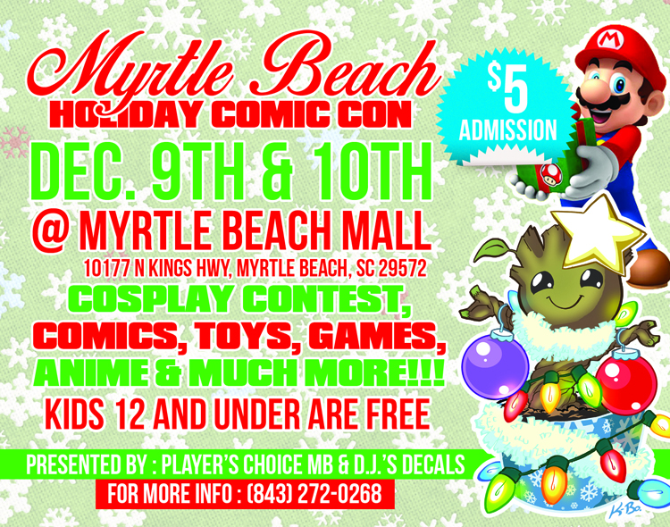 Read More >Player's Choice will host the Myrtle Beach Holiday Comic Con. $5 Admission; kids 12 and under are free. HERE IS THE LINEUP FOR OUR SHOW: Land of Misfit Toys & Comics: https://www.facebook.com/landofmisfittoys912 2nd Player Video Games: https://www.facebook.com/2ndplayervideogames Punk Monkey Comics:…